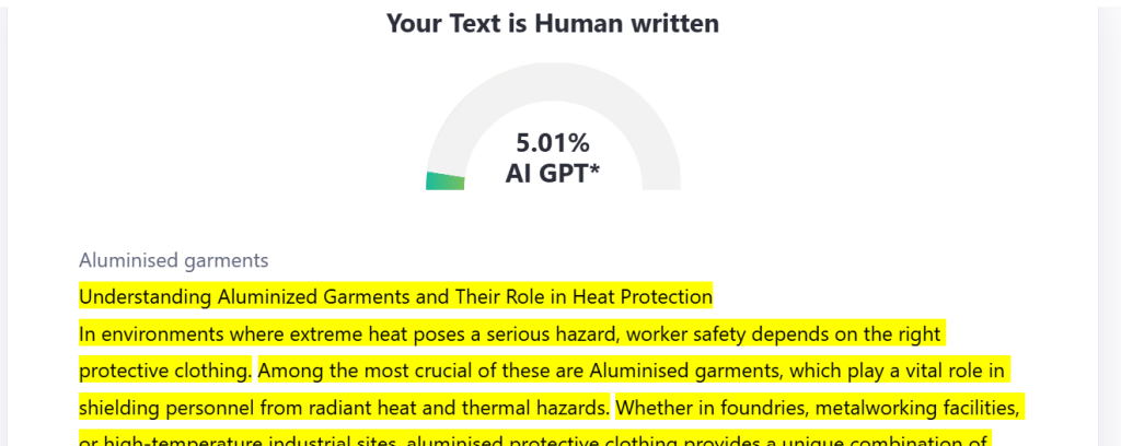 In order to be effective, aluminised protective gear should meet the required safety standards. Numerous international standards regulate heat-resistant materials, such as those that provide the level of performance of radiant heat resistance, molten metal splash protection, convective heat resistance, and contact heat resistance. Adherence to these standards guarantees that Aluminised garments are highly tested and can work under the set conditions.